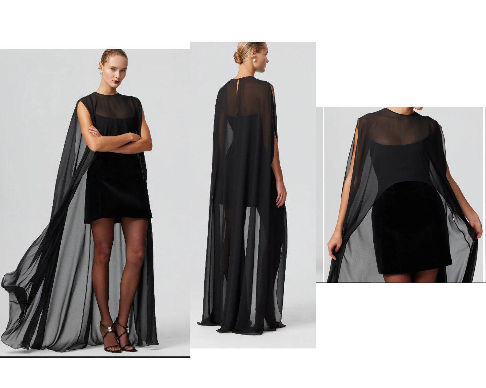 5-7 фото. Черная накидка (спереди чуть ниже груди длина, сзади со шлейфом (вниз нужно надеть платье черное в обтяг)